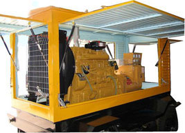 白云矿区柴油发电机组/移动柴油发电机组设计独具创新,机动性高、重心低、制动安全、制造精良、外形美观。 白云矿区拖车车架采用槽梁焊接成框架结构,节点选择合理、强度高、刚性好;同时装有钢板弹簧悬架结构;拖车采用高度可调节插销式牵引架,适用于各种高度牵引车;采用圆形钢管焊接直通式车轴,结构紧凑,安全可靠;车架四角设有机械式支撑装置,配备惯性行车制动、驻车制动和脱离应急制动,确保机组在各种状况下的安全;车架前端设有支撑轮,具备承受机组垂直载荷的功能的同时还具备导向功能;整车配备转向和刹车指示灯,同时装有尾灯标准插头